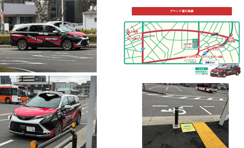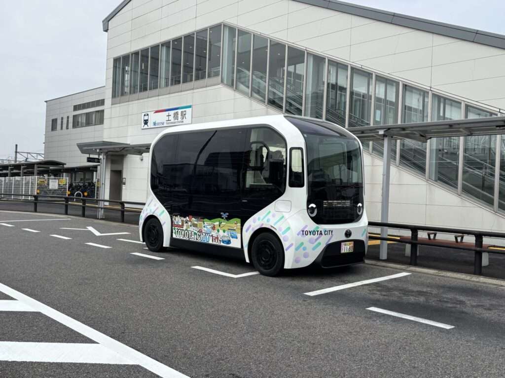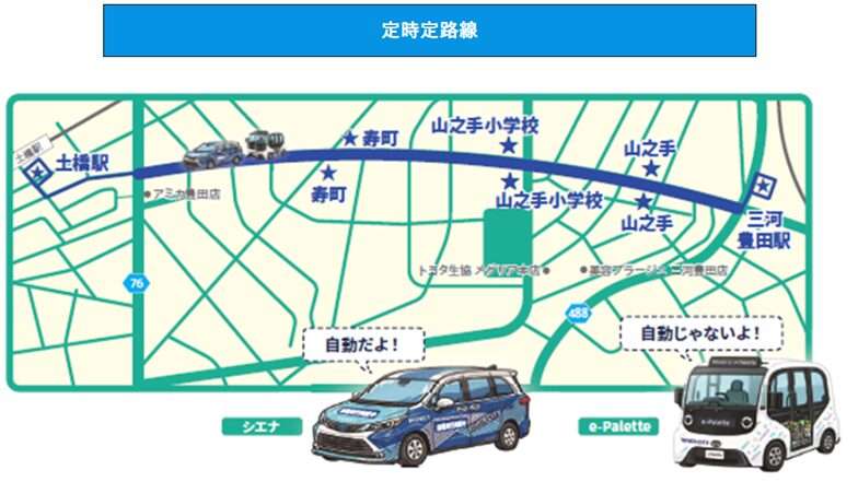 今回は愛知県豊田市が実施している定時定路線のロボタクシーに追従するe-paletteと