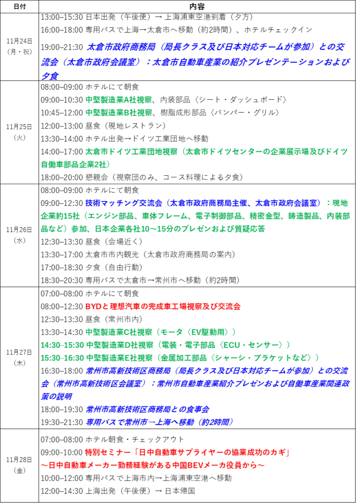 両社ともに 本視察団向けのオリジナルコースとして、工場の部品ラインおよび完成車ラインを見学予定です。(一般見学者コースではありません)