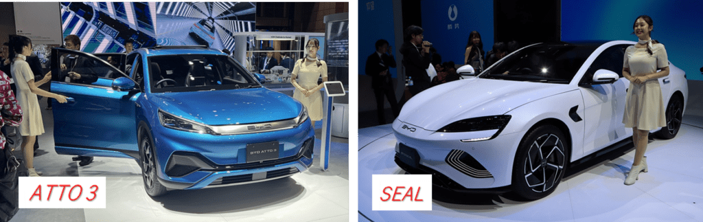 主な生産車両 王朝シリーズ、海洋誌リース「ATTO 3(元 PLUS)」「SEAL(海豹)」「海獅07EV」