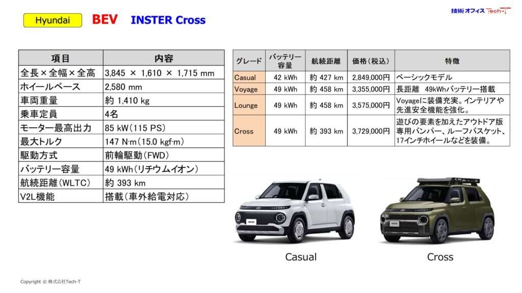 2025年9月に日本での発売を開始した都市型スモールBEV INSTER Cross