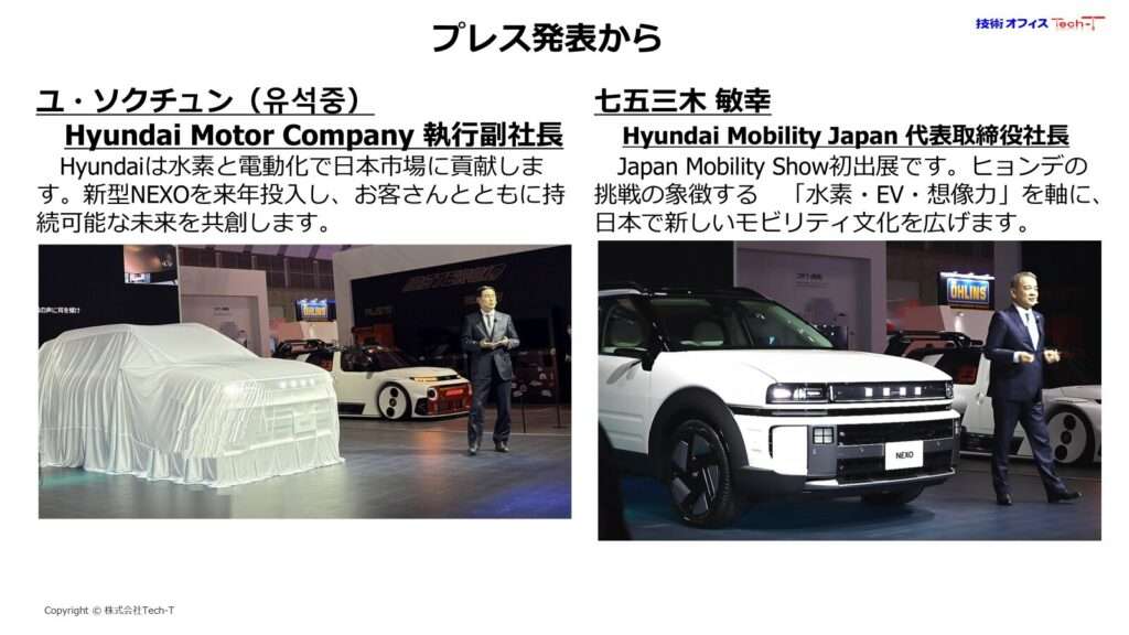 新型NEXOをunveil(覆いを外す)紹介するとともに、来年上半期日本での発売もアナウンスされました。