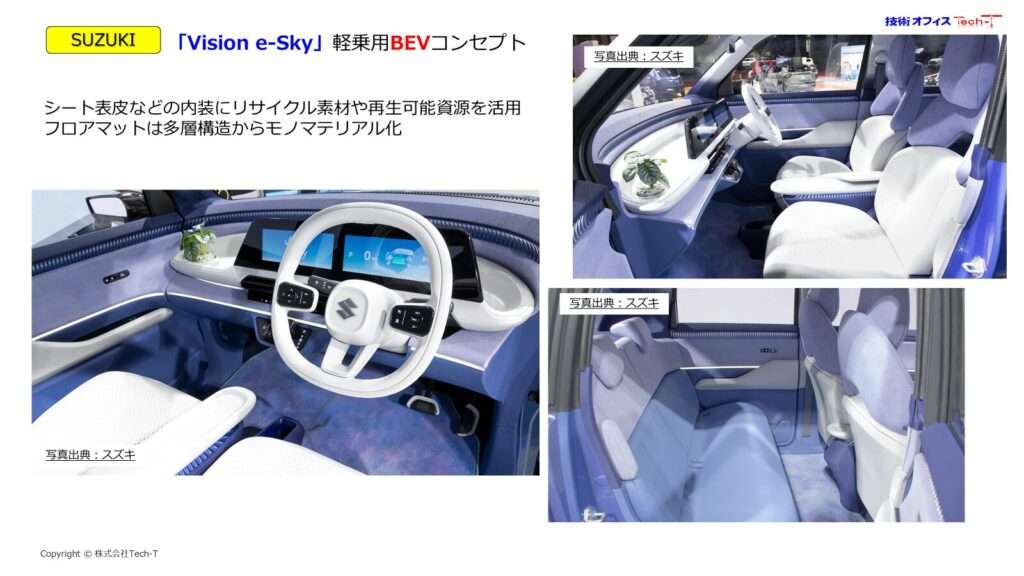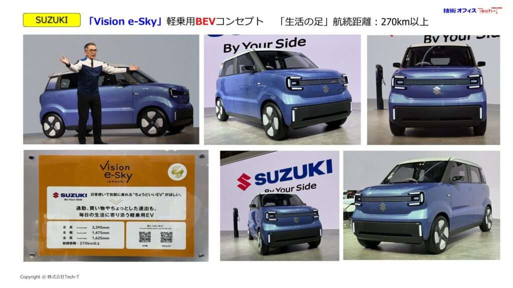 『Vision e-Sky』は航続距離270km以上を誇る軽乗用BEVで、リサイクル素材を活用したサステナブル設計が特徴。