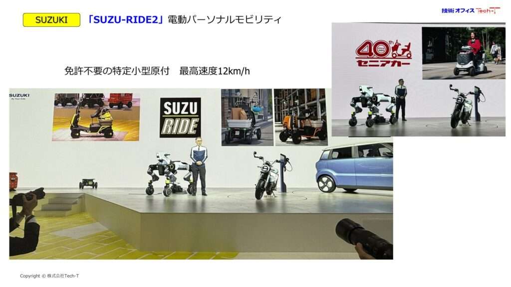 『SUZU-RIDE2』は免許不要の特定小型原付で、都市部での新しい移動手段として注目されています。