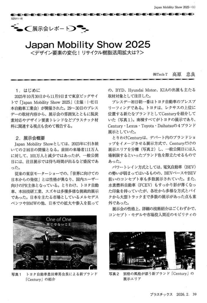 月刊プラスチックス26年2月号に一般記事にて以下の掲載がありますのでご案内いたします。