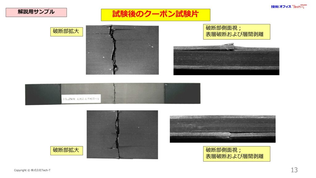破断した現物を見て、CFRPならではの破壊モードを理解。