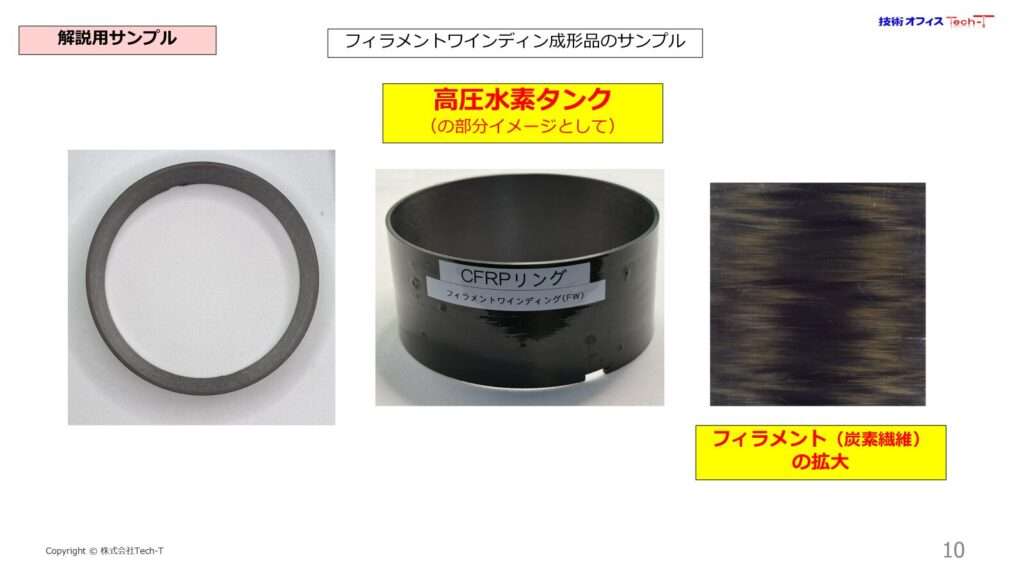 この原理原則の理解こそが重要です。会場では、CFRPの材料と、その試験片、成形品を目の前にして解説します。大半のサンプルは、ご自身で見て触って確認できます。