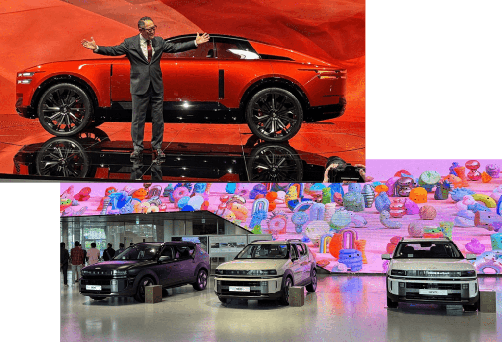 写真はHyundai最大のショールームでの新型水素自動車NEXO特別展示です。